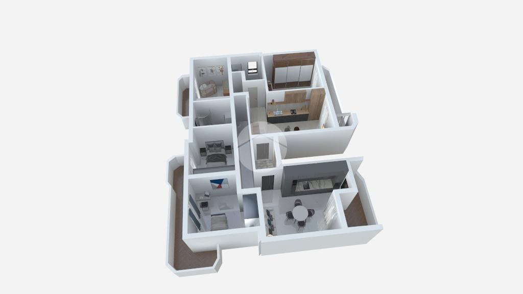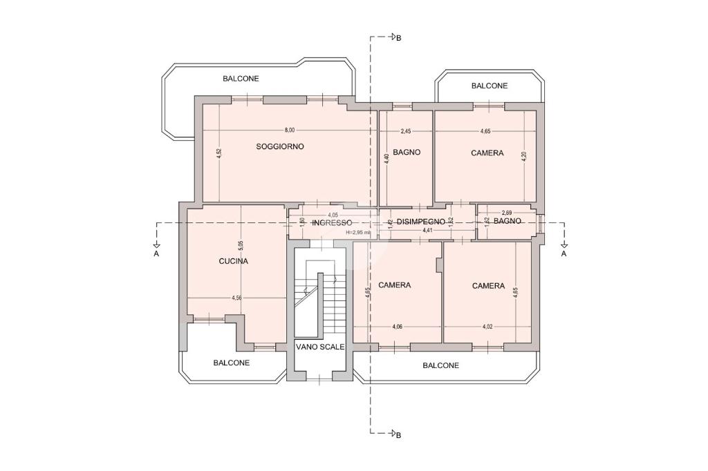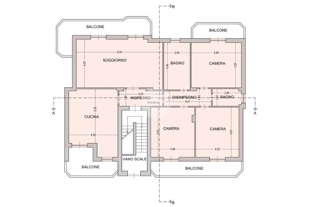 Gli spazi interni, ampi e ben distribuiti, comprendono un ingresso in corridoio che suddivide tutti gli ambienti, di cui, un soggiorno con doppia portafinestra ed affaccio sul primo balcone esposto ad est, una cucina abitabile con accesso ad un balcone terrazzato, 3 camere da letto con affaccio su due balconi e due bagni con finestre.