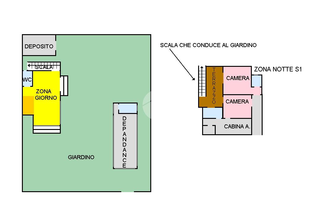 La soluzione, sviluppandosi su due livelli, è suddivisa in zona giorno e zona notte.