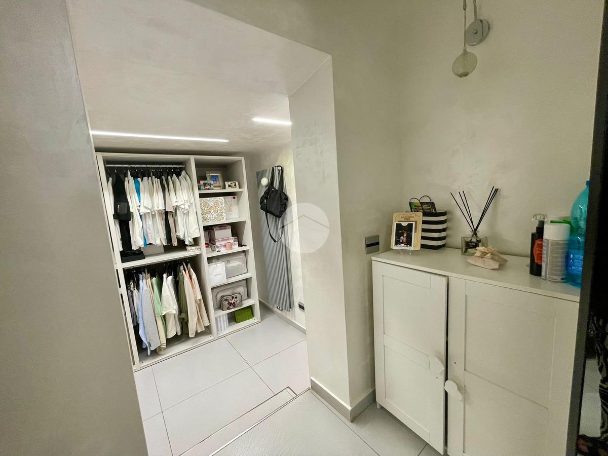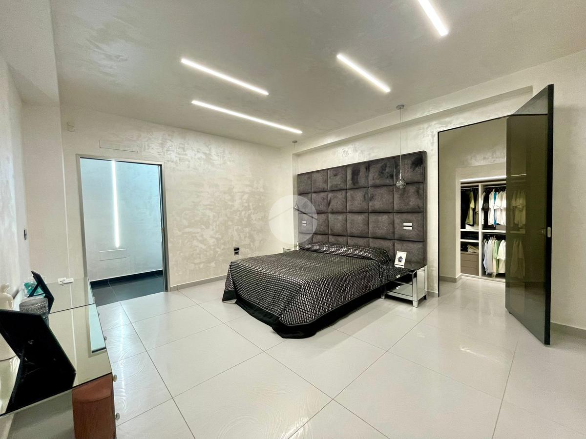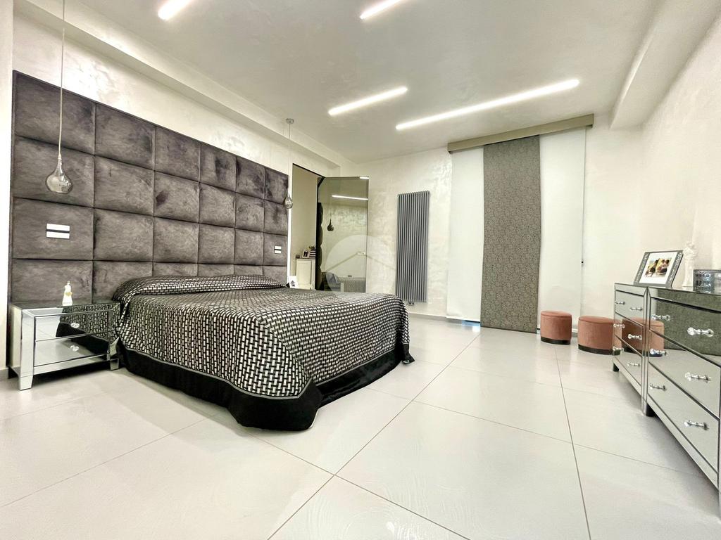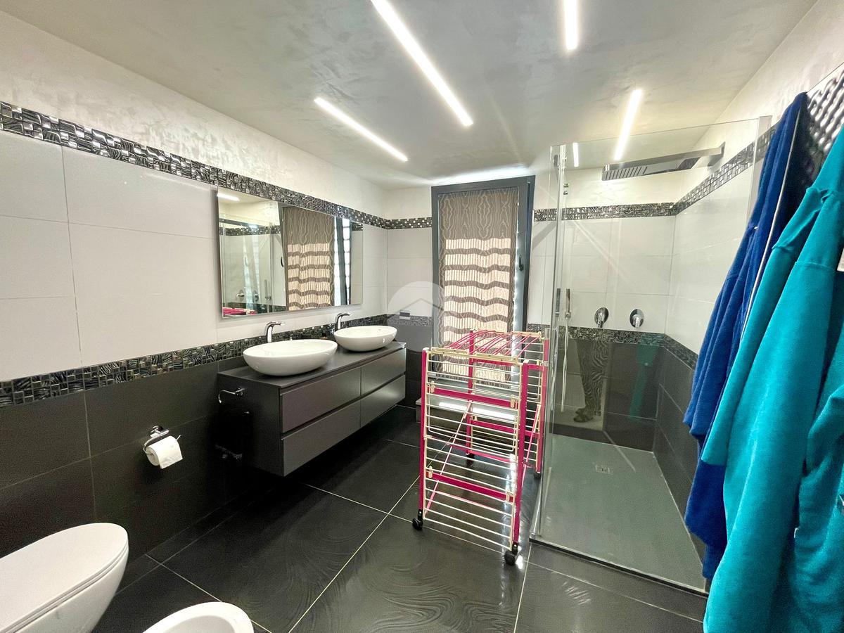 La zona notte, al livello sottostante, invece, è composta dalla camera padronale con ampia cabina armadio, lavanderia e bagno privato con box doccia e da un'altra camera ampia, anch'essa con bagno riservato, tutte con affaccio sul terrazzo a livello.