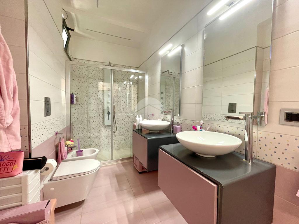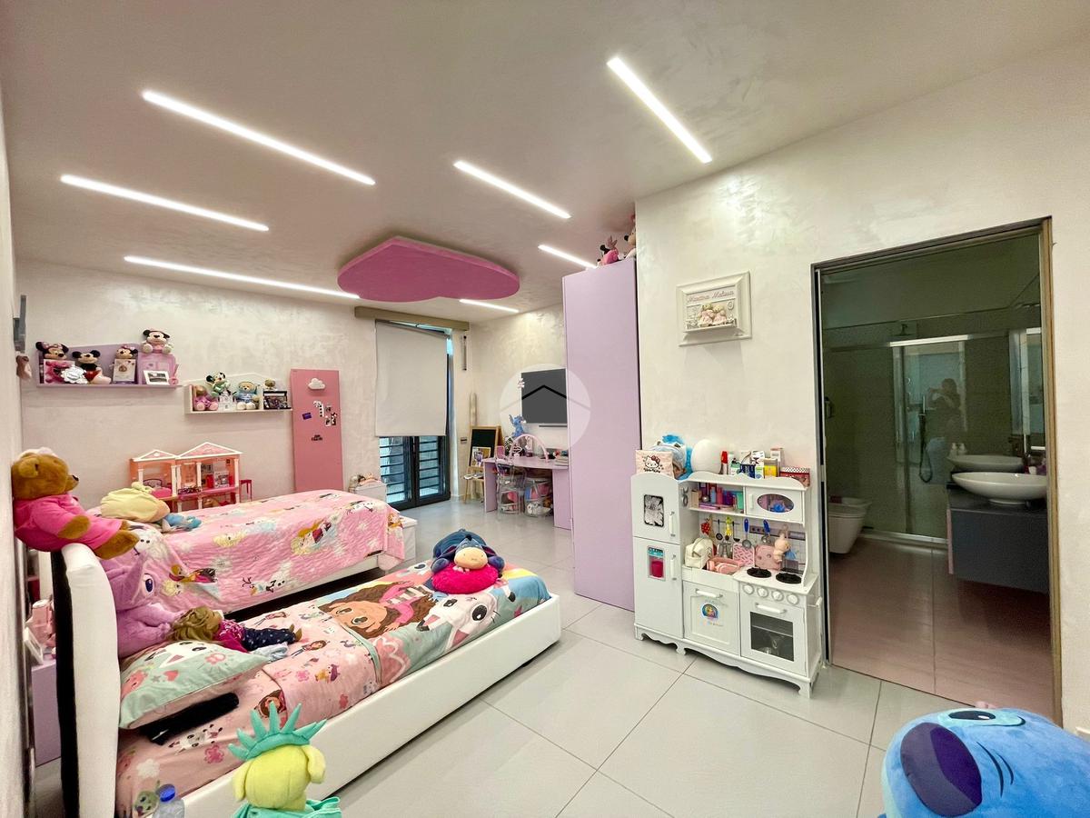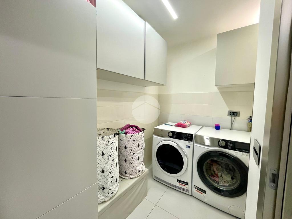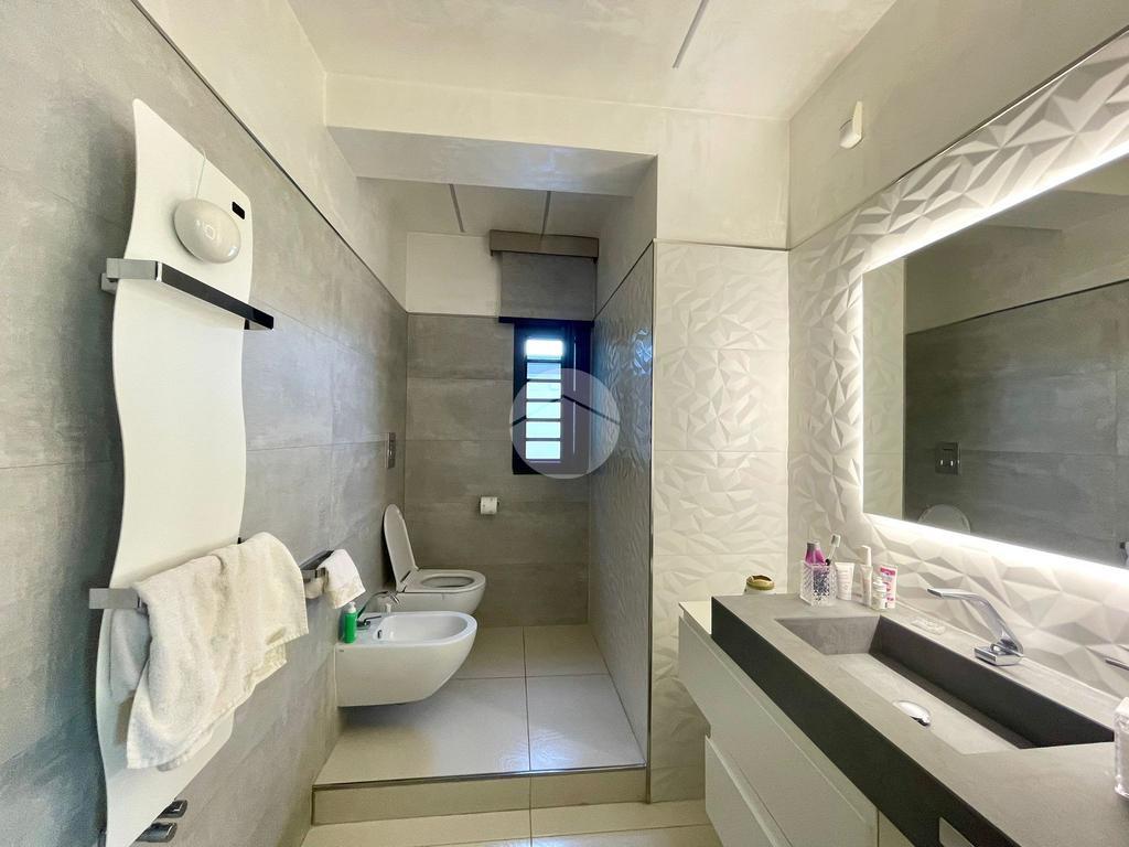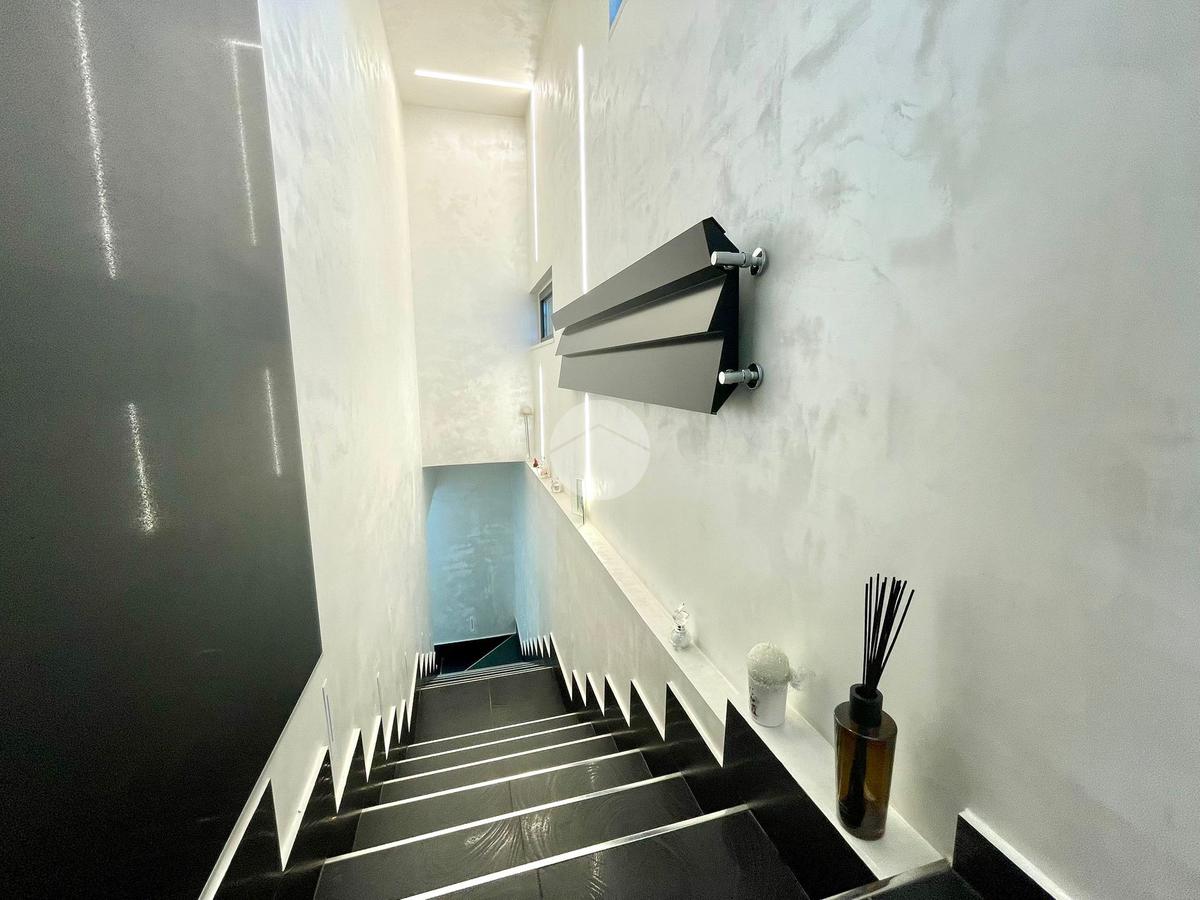 La zona notte, al livello sottostante, invece, è composta dalla camera padronale con ampia cabina armadio, lavanderia e bagno privato con box doccia e da un'altra camera ampia, anch'essa con bagno riservato, tutte con affaccio sul terrazzo a livello.